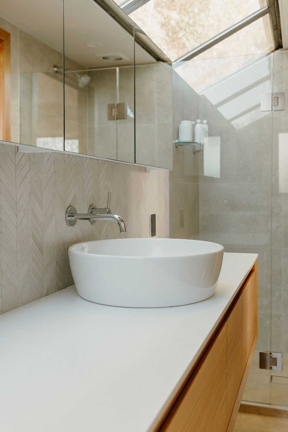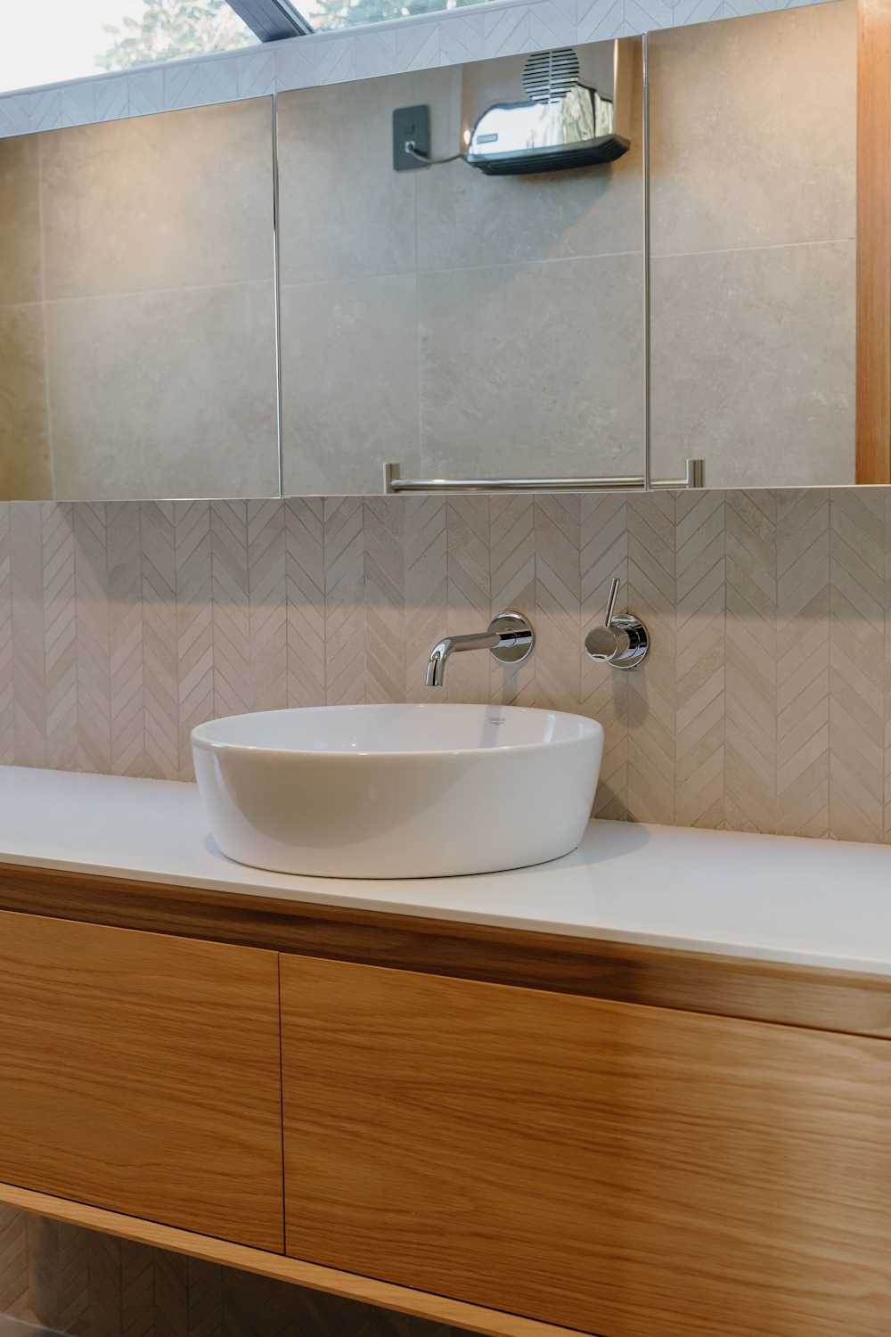 This cold south facing bathroom was in need of an update. I was brought in to assist with specification of all finishes, tiles, cabinetry, fittings and hardware as well as a tweak in layout for this project.